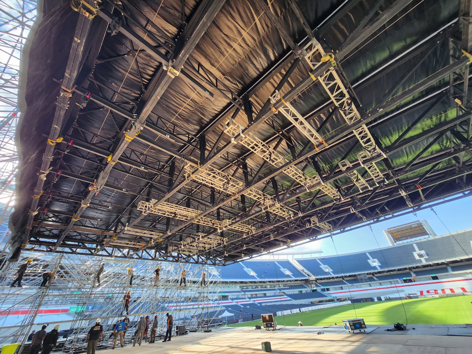 La estructura fue pensada específicamente para soportar el proceso de izaje y las exigentes cargas técnicas de este tipo de shows.
